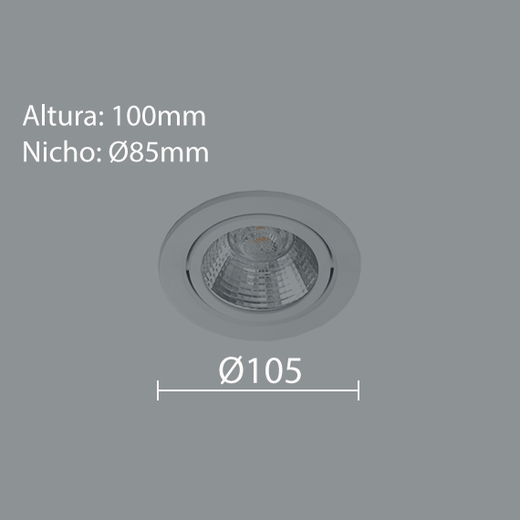 Aplicação: IP: 20Produto:Estrutura em alumínio injetado;Pintura eletrostática Micro Textura;Foco orientável;Soquete GU10.